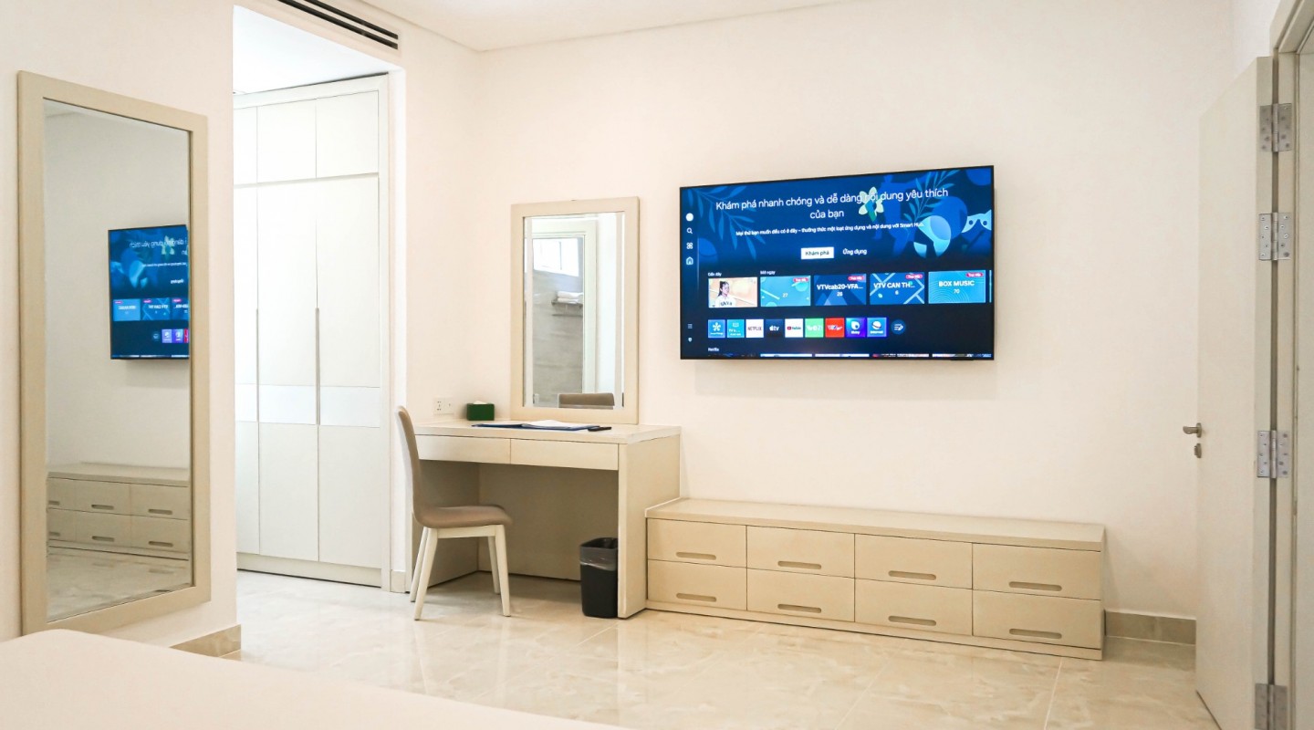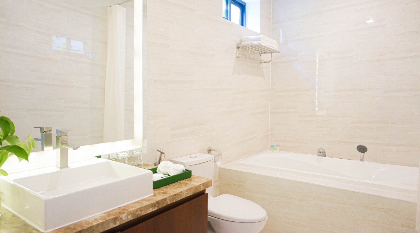 Căn phòng sở hữu vẻ đẹp sang trọng với thiết kế độc đáo sẽ mang đến không gian thư giãn thoải mái cho Quý khách sau những giờ phút căng thẳng của cuộc sống thường nhật. Lối kiến trúc mở, tận dụng tối đa khoảng không đón gió và ánh sáng tự nhiên, giúp con người giao hòa cùng thiên nhiên. Tại đây, quý khách có thể tận hưởng vẻ đẹp thuần khiết và trong lành của thiên nhiên vào mỗi buổi sớm mai thức dậy, chỉ cần bước ra là Quý khách có thể thấy ngay làn nước trong veo xanh mát của hồ bơi Khu Nghỉ Dưỡng.